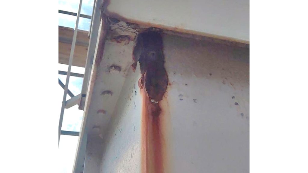 本事例では、腐食部の下地処理を行ったうえで金属パテを使用し、補修部の形状調整を実施しました。